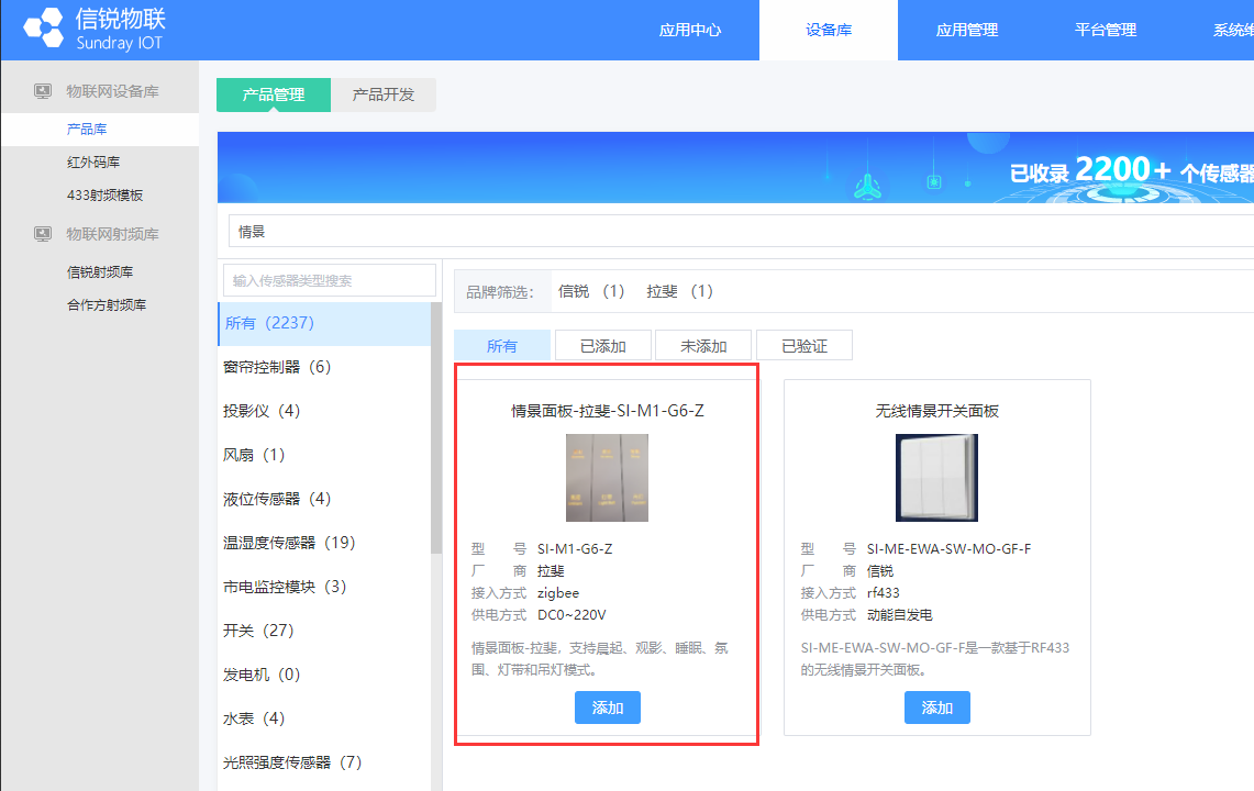 进入设备管理页面》在设备列表中选择 卷帘电机》点击新增》批量新增》选择硬件》类型选择 zigbee六键情景面板》选择要添加的设备》提交