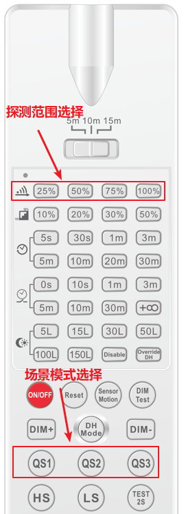 b)探测范围选择:灵敏度从25%~100%依次增大。