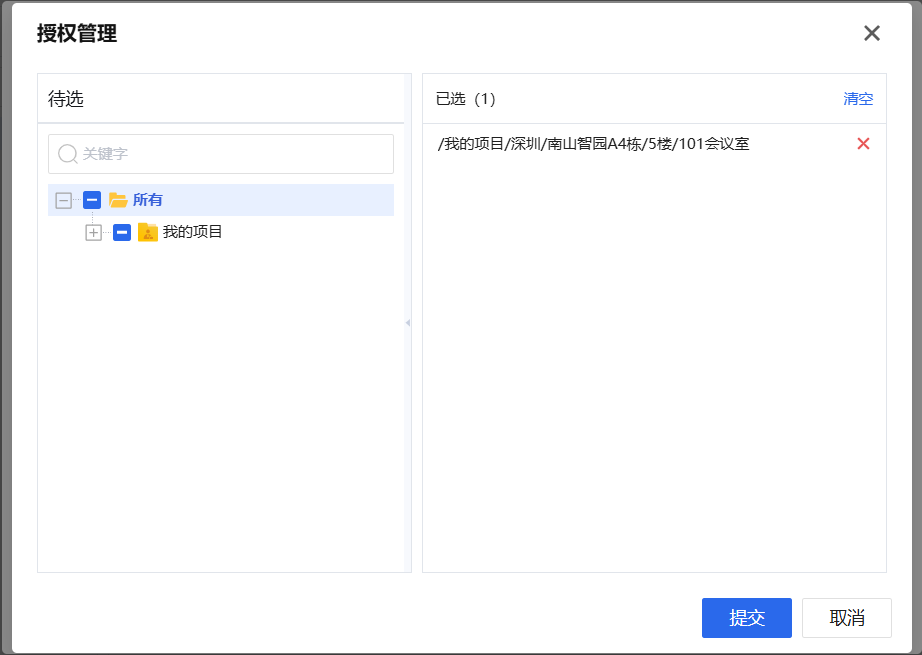 在显示的授权管理页面中,右栏可查看到所有外设功能已授权的主机。