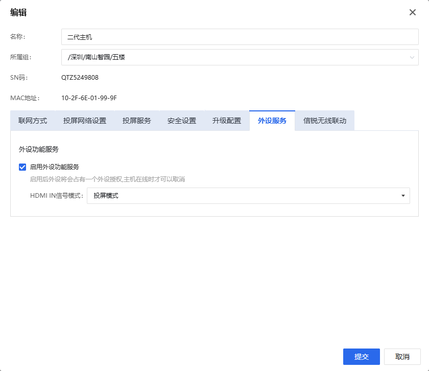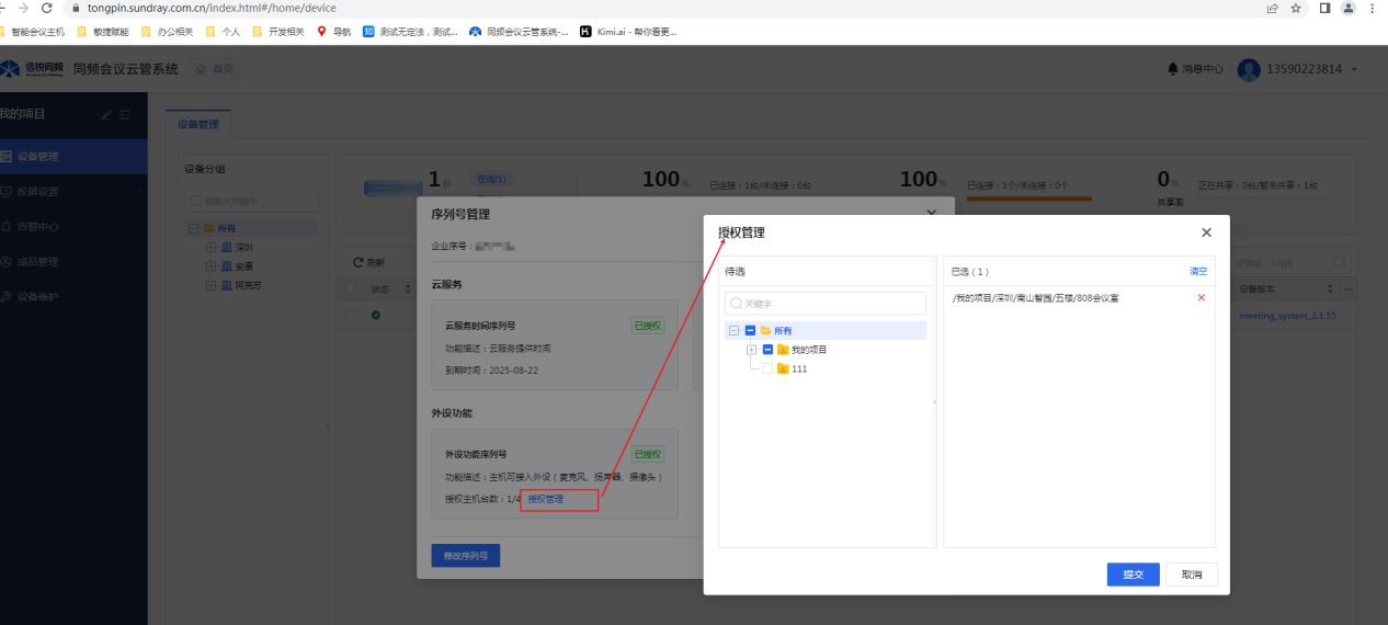 对会议主机进行外设功能授权,授权后会议主机才可以使用外设功能