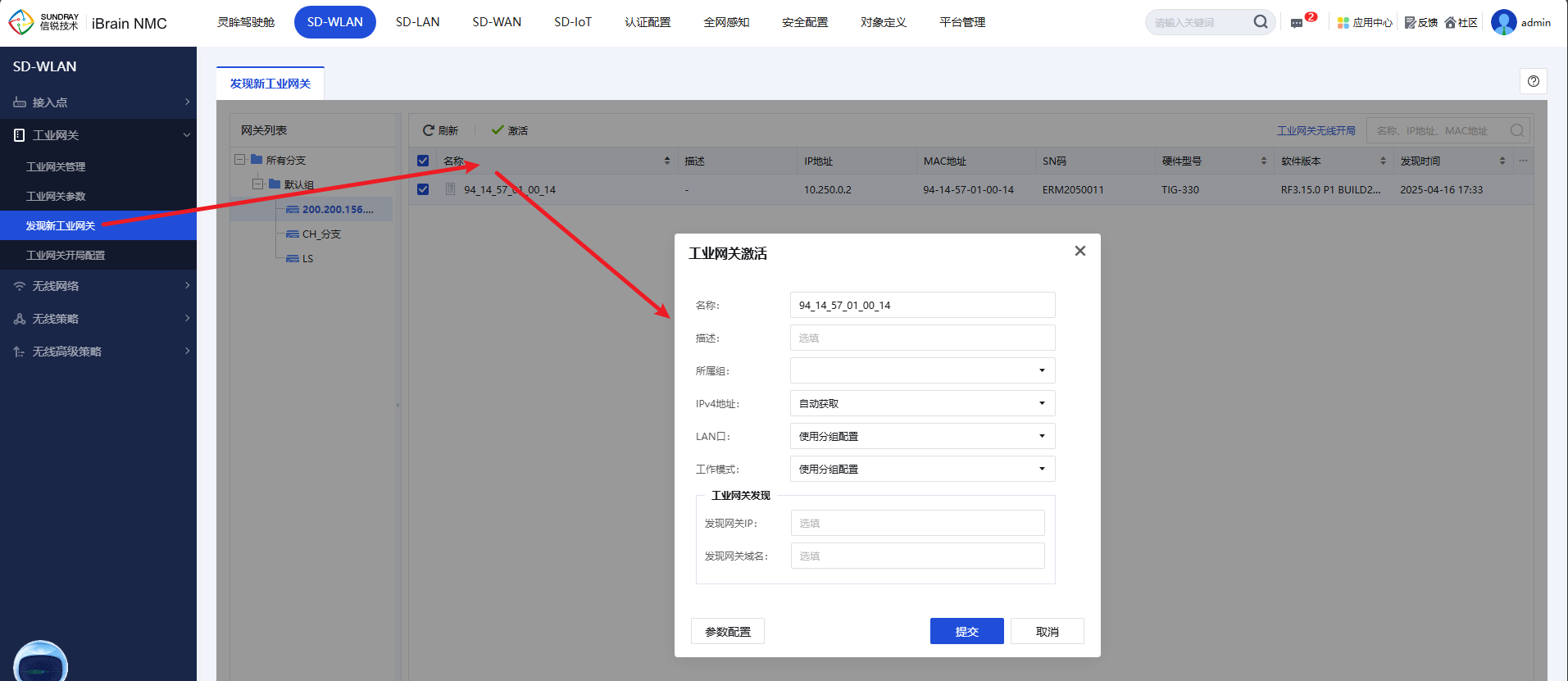 5、存在已经上电的工业网关,在发现新工业网关页面进行激活和配置