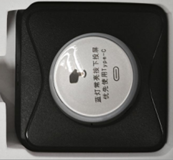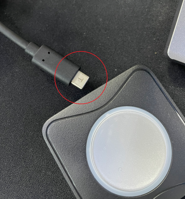 使用typeC接入时,需要注意接投屏器端的typeC线接入到正面。如图所示,确保有图示中标记的那一面与投屏器按钮是同个方向的。