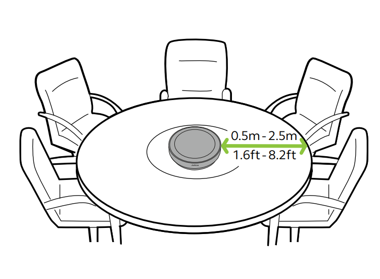 为了获得最佳的音质,请将全向麦置于桌子中央,与每名与会者的距离不超过2.5米(但不小于0.5米)。