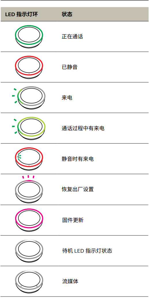 全向麦的LED指示灯将亮起,显示扬声器拾取周围声音的清晰程度。