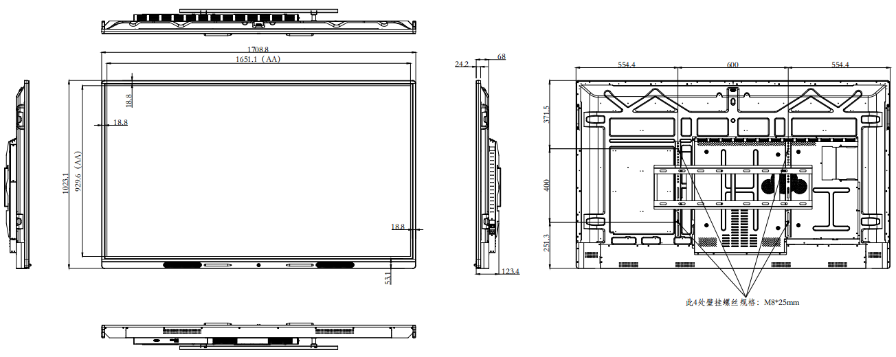 整机尺寸(含壁挂) Product Size with wall mounted |