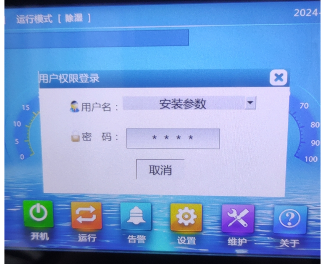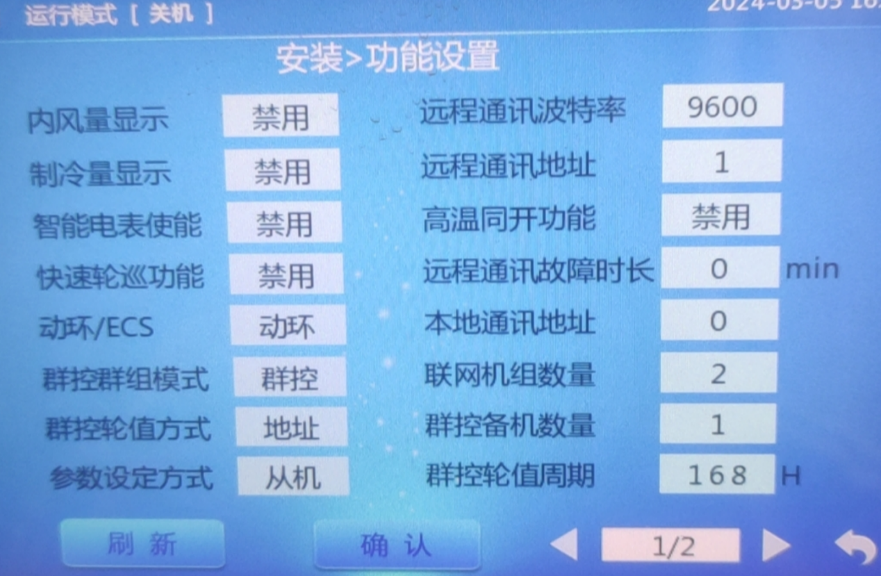 (1)点击“设置”,用户名选择“安装参数”,密码2222,点击“功能设置”。动环/ECS选择“动环”,确认波特率和远程通讯地址(实际地址可能为远程通讯地址+1)。