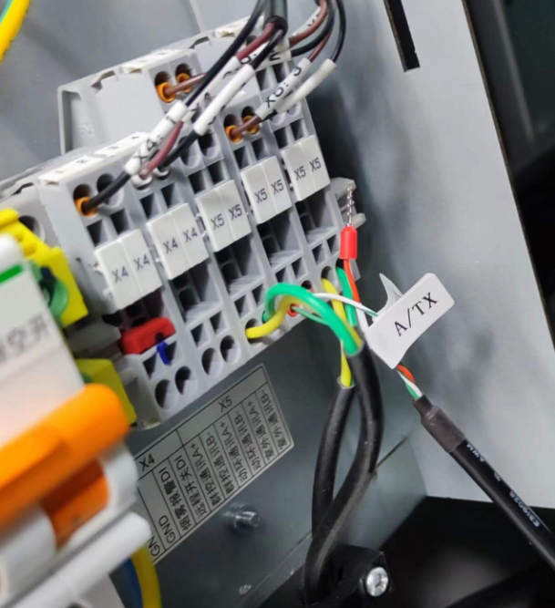(1)拆除防尘板,打开客户接线盒,卸下螺丝后可以拉出来。485接口在最里面,X5-3(A)和X5-4(B)。