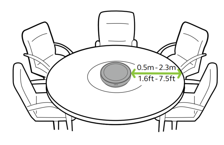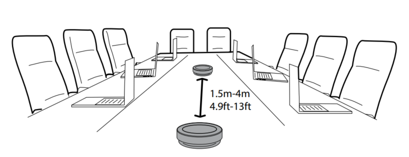 为了获得最佳的音质,请将全向麦置于桌子中央,与每名与会者的距离不超过2.3米(但不小于0.5米)。