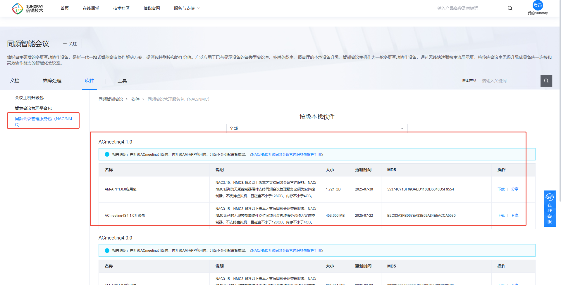 7、完成无线网络调优后,在私有云平台查看会议主机版本是否为最新,若不为最新则需更新到最新版本,然后进行各类终端进行投屏测试,看各种投屏业务是否稳定正常(原生协议+客户端);