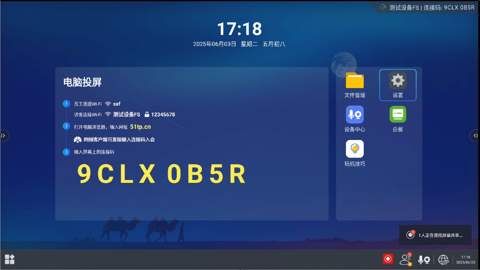 使用无线投屏器,开启线上会议,测试音频设备(全向麦)调用是否正常