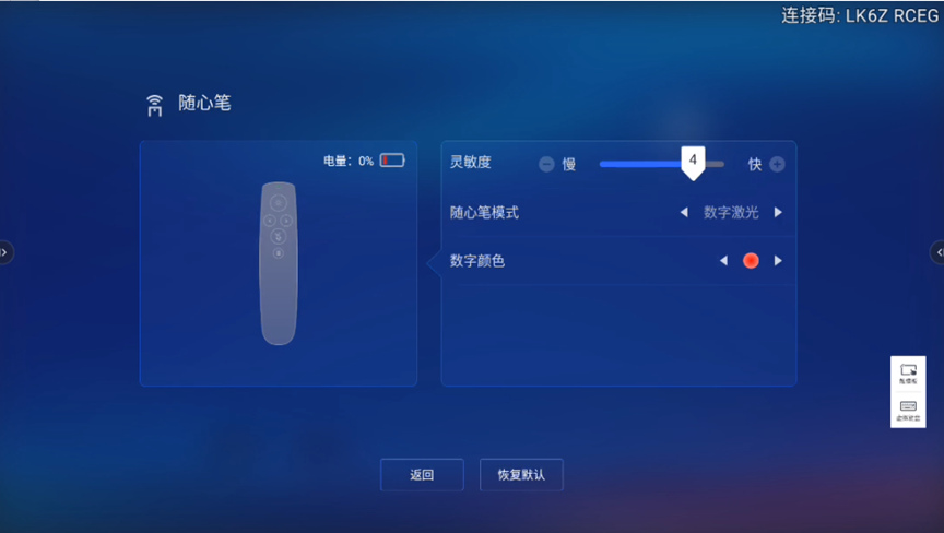 8、确保随心笔正常连接到会议主机,同时演示随心笔的各项控制功能;