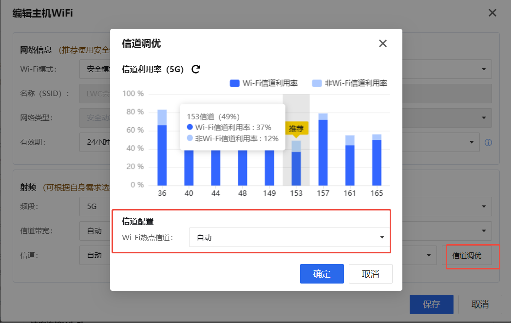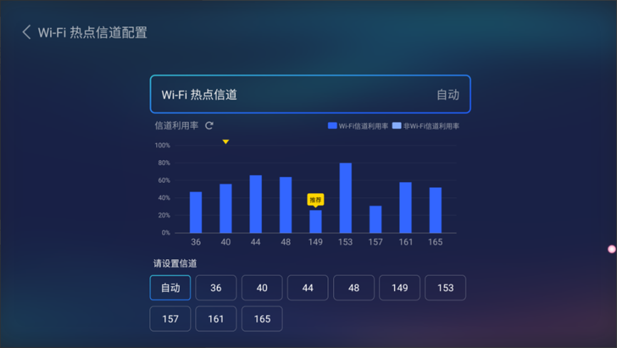6、必须对会议主机投屏WiFi进行无线调优,确保信道、信道带宽处在一个干扰相对较小的环境上;
