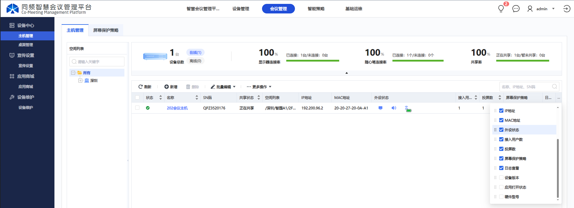 2)能够查看会议室的外设连接状态,无需一个个会议室查看,省时省力。;