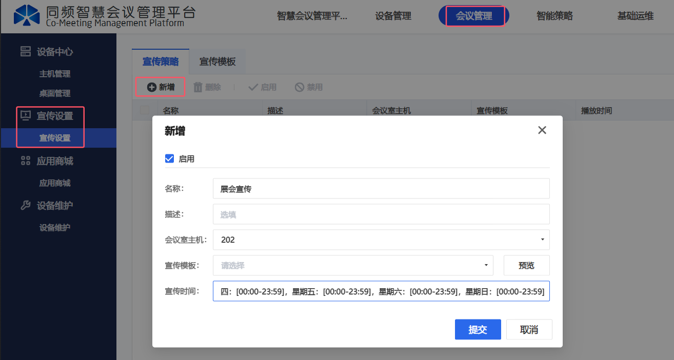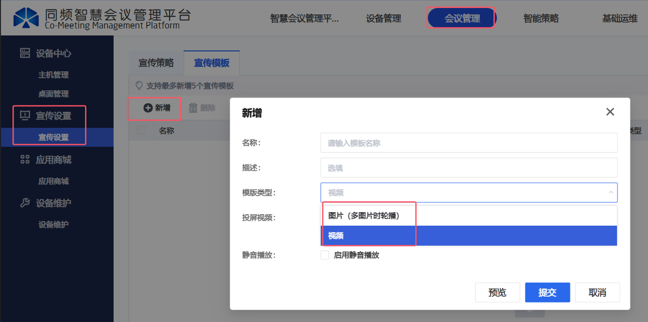 会议主机上线之后,针对所有显示屏,可实现图片和视频的智能宣传
