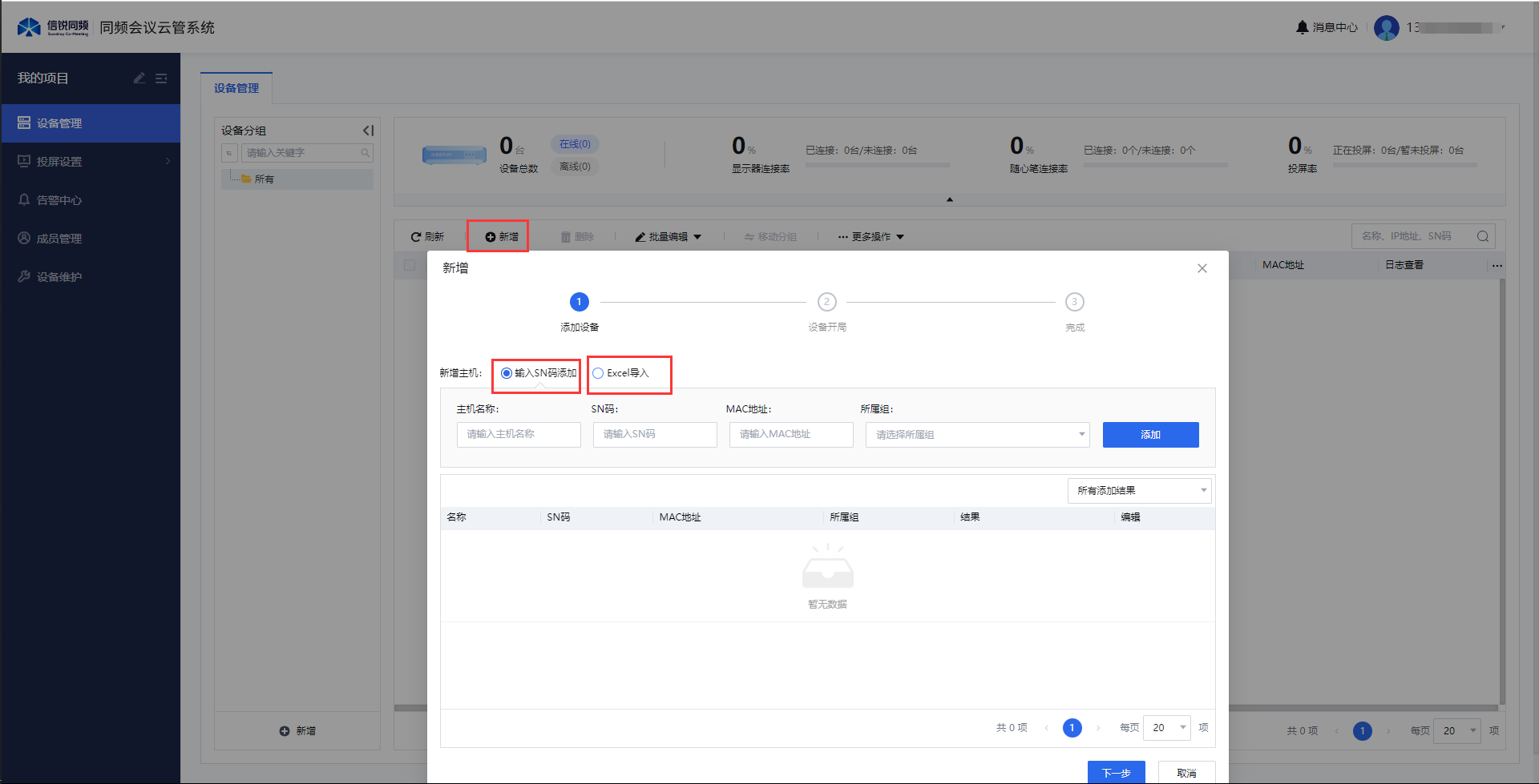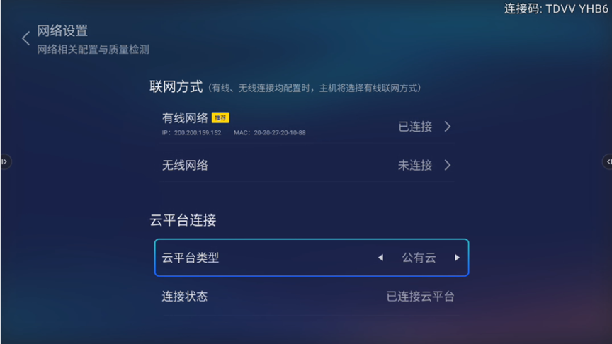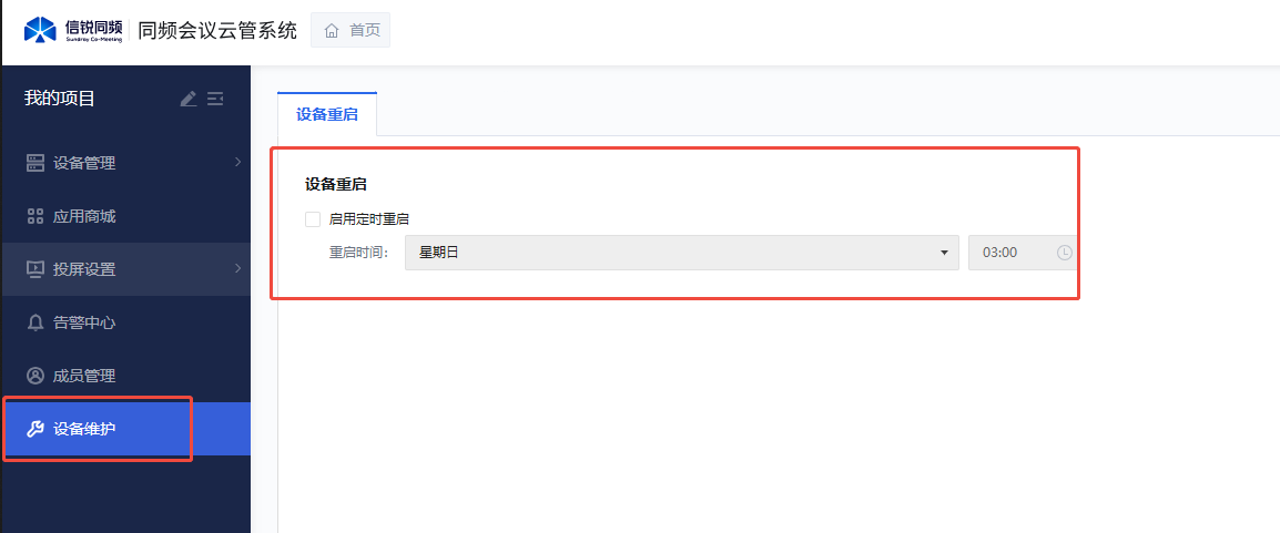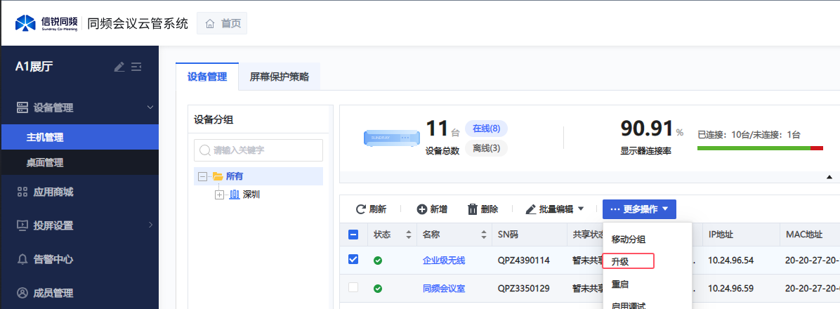 会议主机云平台域名:https://tongpin.sundray.com.cn,云管平台主要实现以下运维功能: