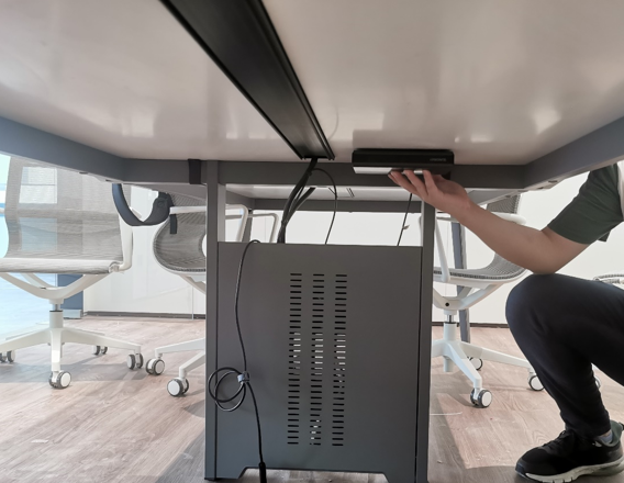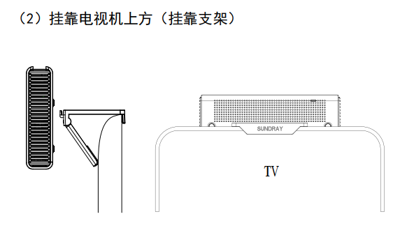 2、壁挂支架螺丝固定在桌子背面、墙体上