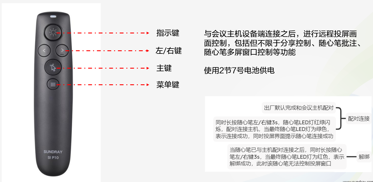 8、确保随心笔正常连接到会议主机,同时演示随心笔的各项控制功能;