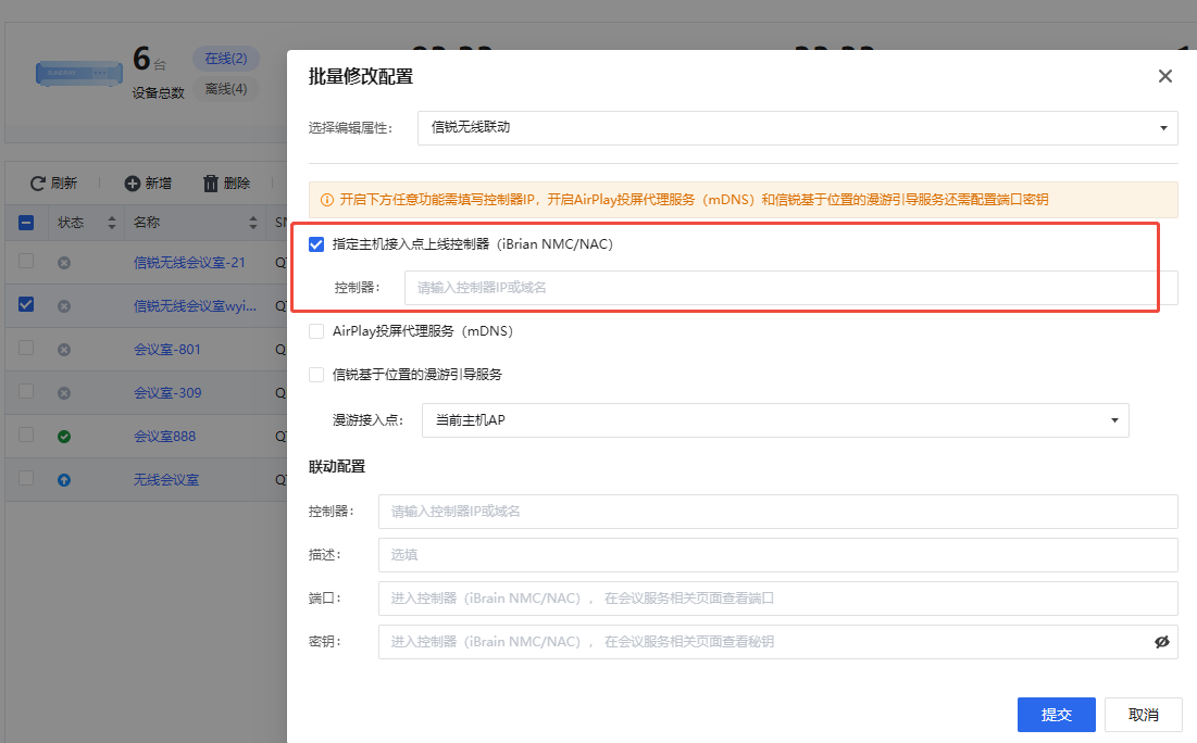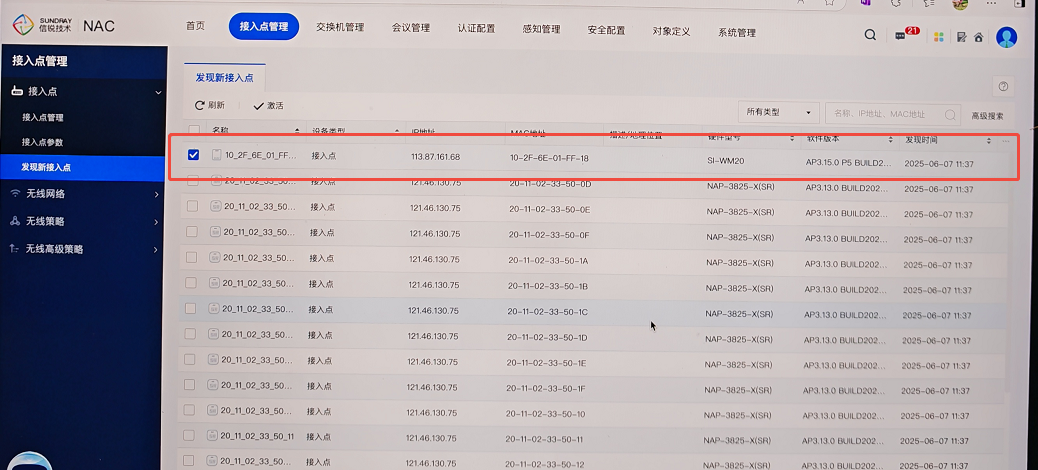 融合款会议一体机(SI-WM20)里面的WIFI-7 AP部分可配置上线到指定的无线控制器(NAC/NMC),无线控制器版本3.15.0 P4。