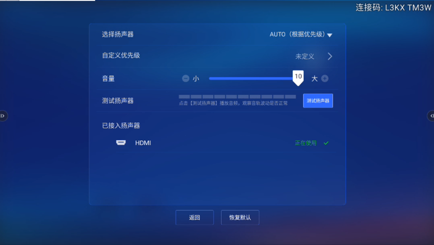 使用无线投屏器,开启线上会议,测试音频设备(全向麦)调用是否正常