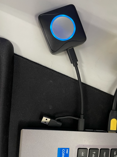 1、 Mac电脑及windows电脑均支持通过typeC接口投屏,投屏器通过 typeC 接口接入到PC上,等待指示灯从蓝灯闪烁转为蓝灯常亮。