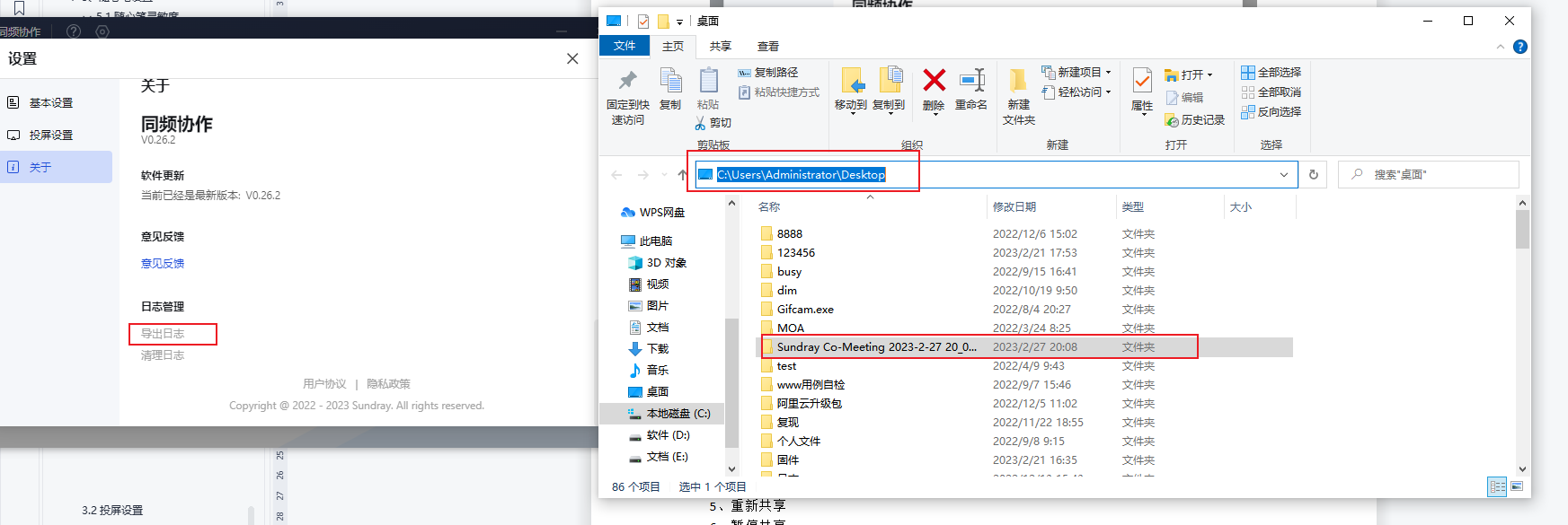1)导出日志:点击导出日志按钮,界面弹出日志保存的默认路径。