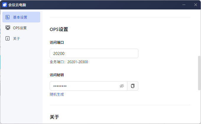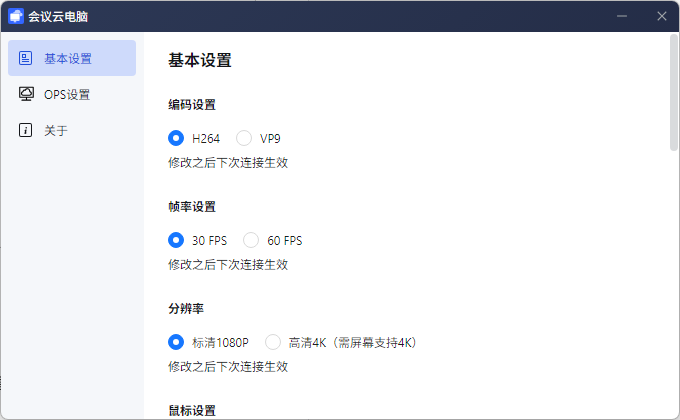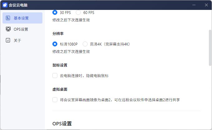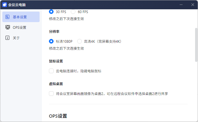 功能:通过“基本设置”、“OPS设置”、“关于”三个模块,可设置客户端的部分功能。