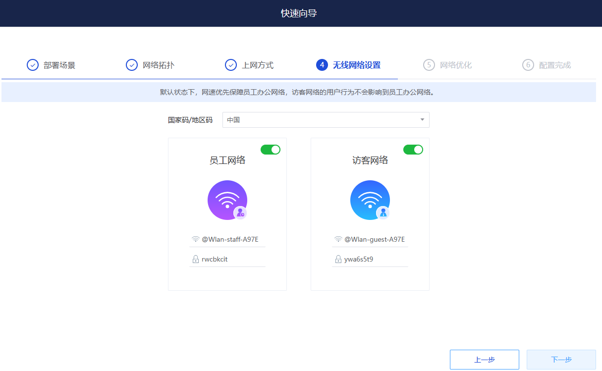 3、无线网络设置,可保持默认,也可根据实际情况手动修改;