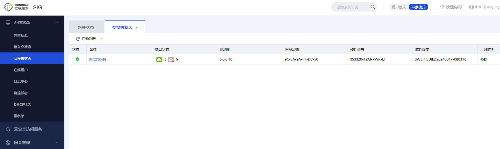 1、激活交换机前需要确定AP/交换机的型号、版本和当前SIG版本是否兼容,如不兼容会导致设备处于离线状态;