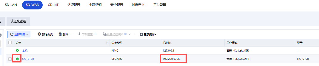 5、在总部NMC上审核分支SIG,可以看到SIG以公网地址上线到NMC。