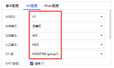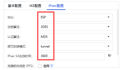 3、IPSec配置,需要和对端VPN设备配置保持一致。