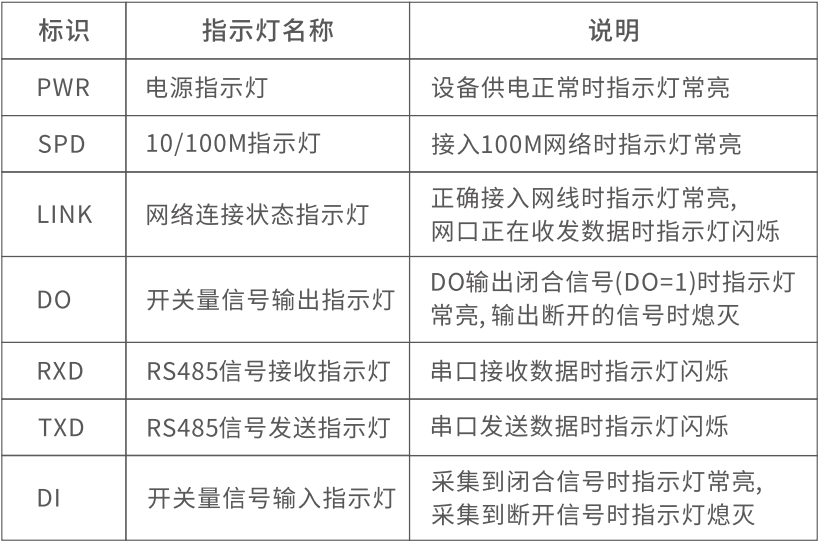 1.2.1指示灯状态