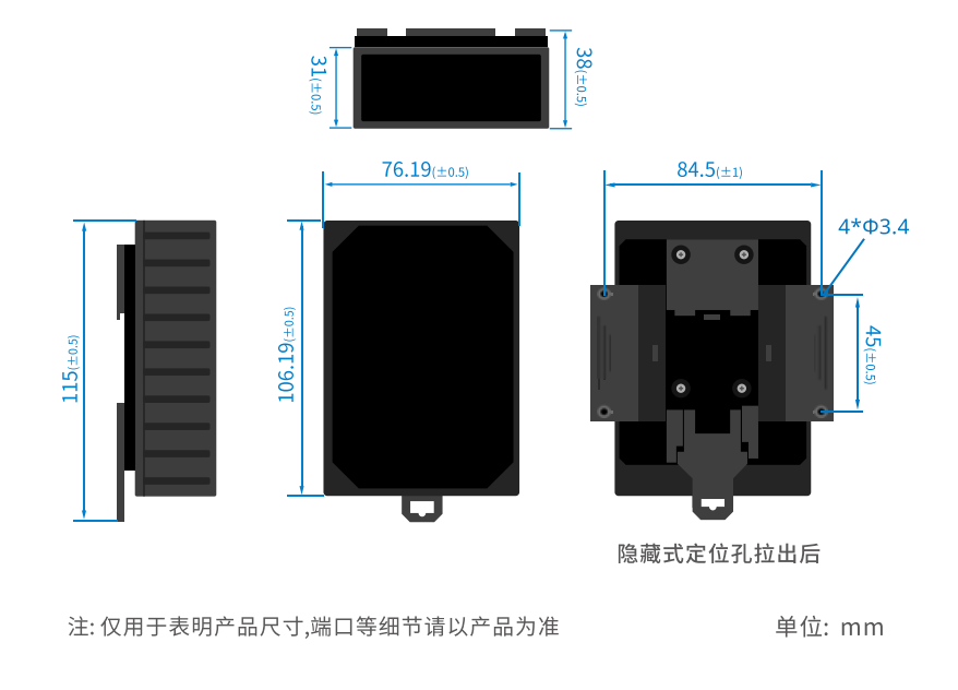• 支持导轨安装、定位孔安装等灵活的安装方式,方便部署。