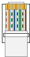 4、T568B线序标准如下左图,从左到右:1.橙白、2.橙、3.绿白、4.蓝、5.蓝白、6.绿、7.棕白、8.棕。