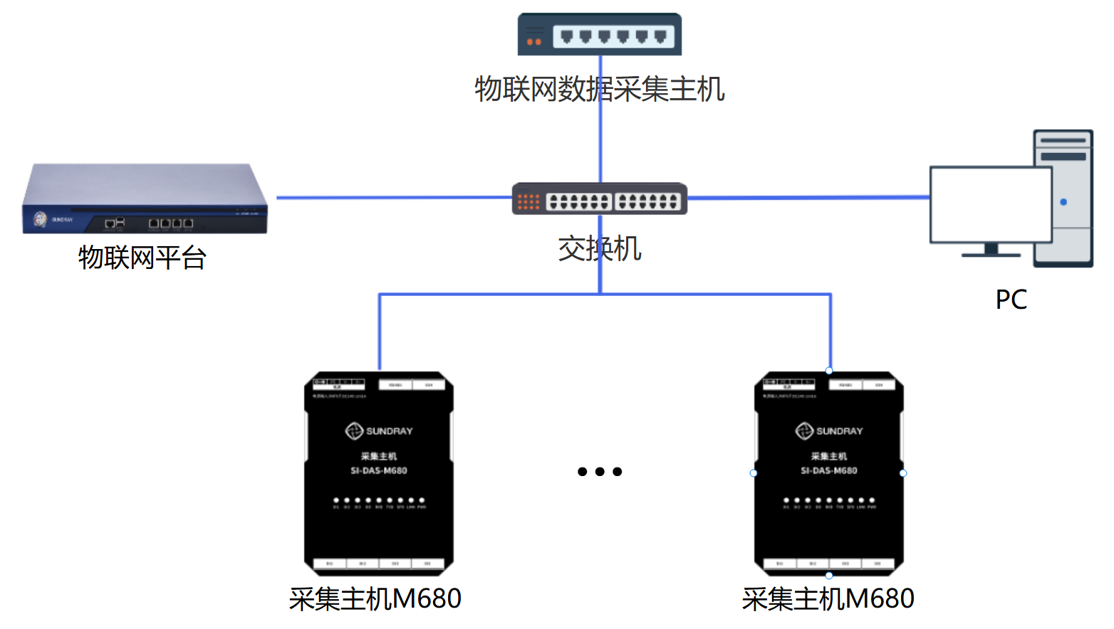 1、采集主机与DI设备、DO设备、RS485设备之间的连接均使用超五类或更高规格的网线;