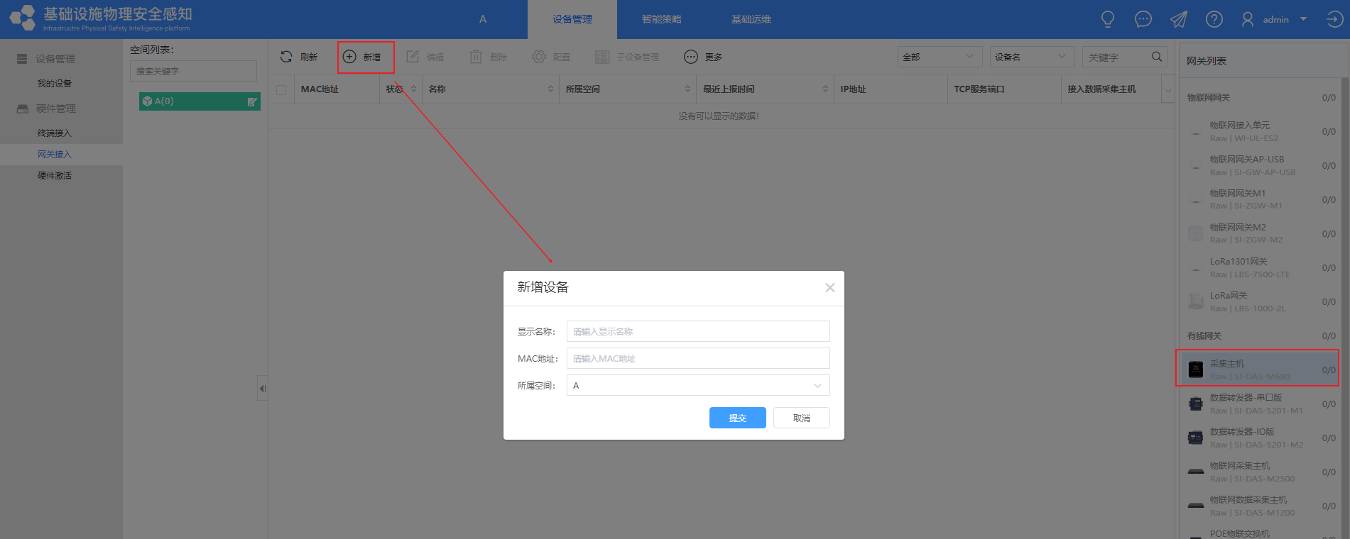5.1.3.1设备库中添加需要上线的设备
