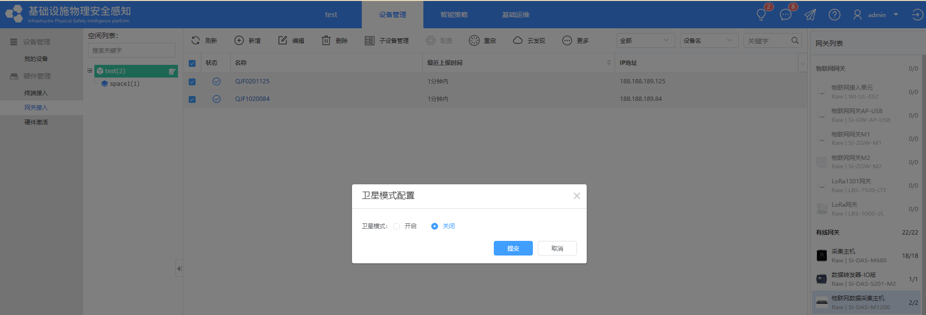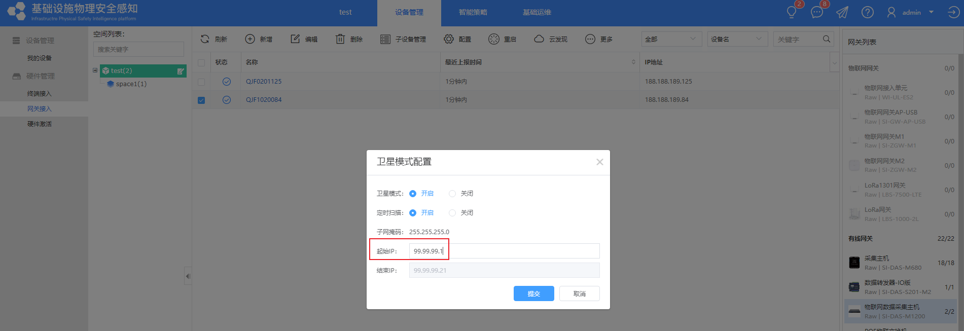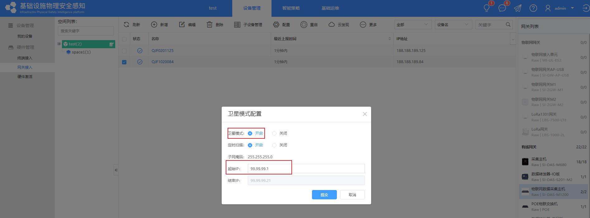 b、卫星模式的IP不要与物联网平台、M1200的IP同网段