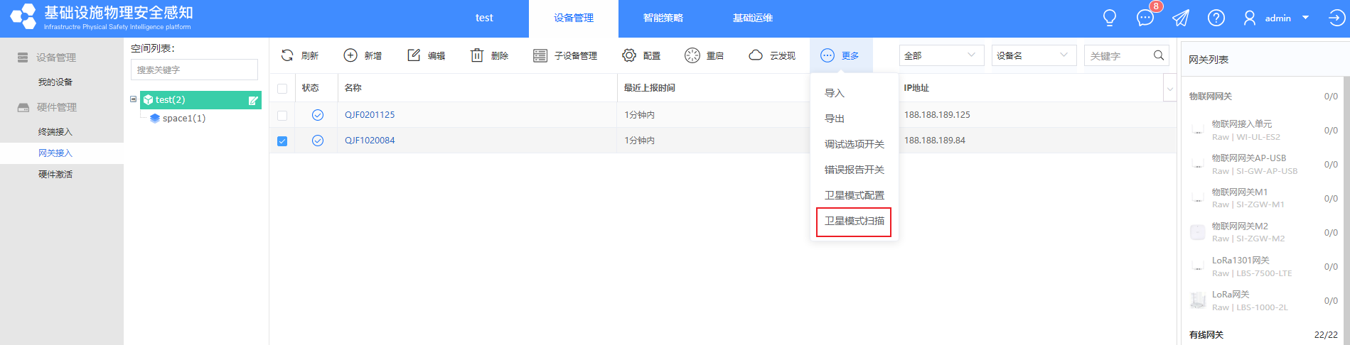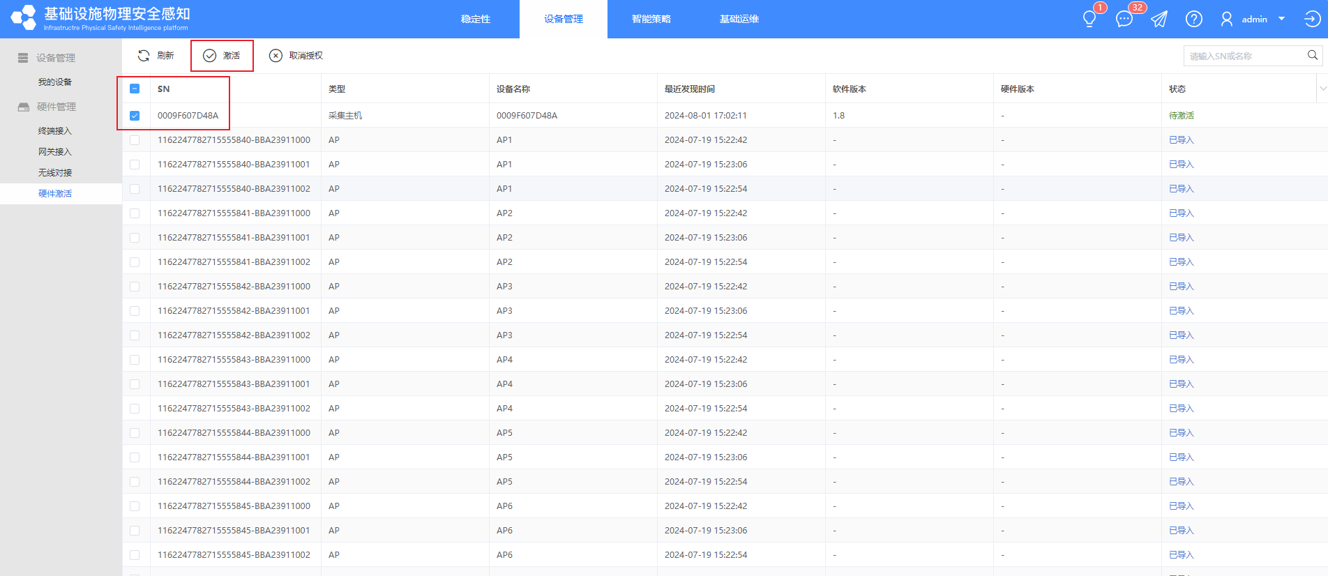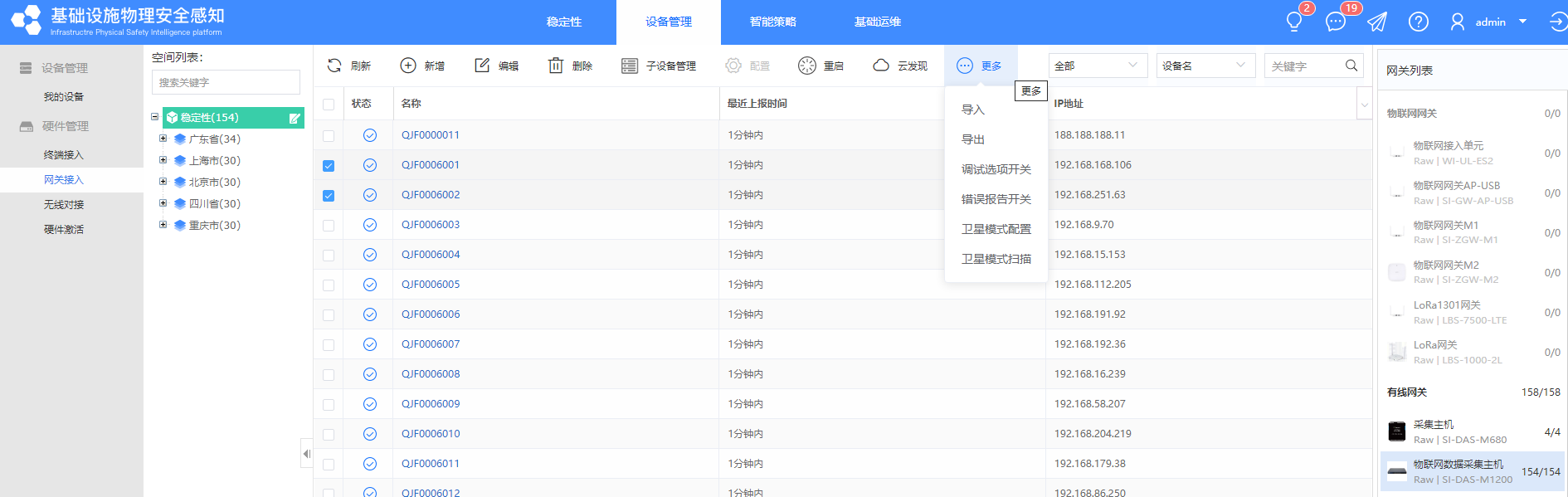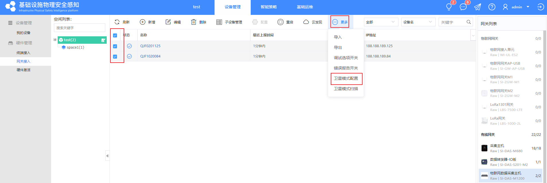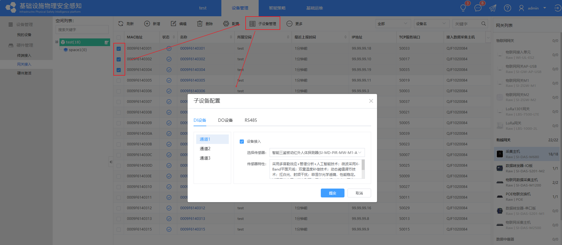 ①【设备管理】-【网关接入】-【采集主机】中手动添加或文件导入采集主机的设备信息