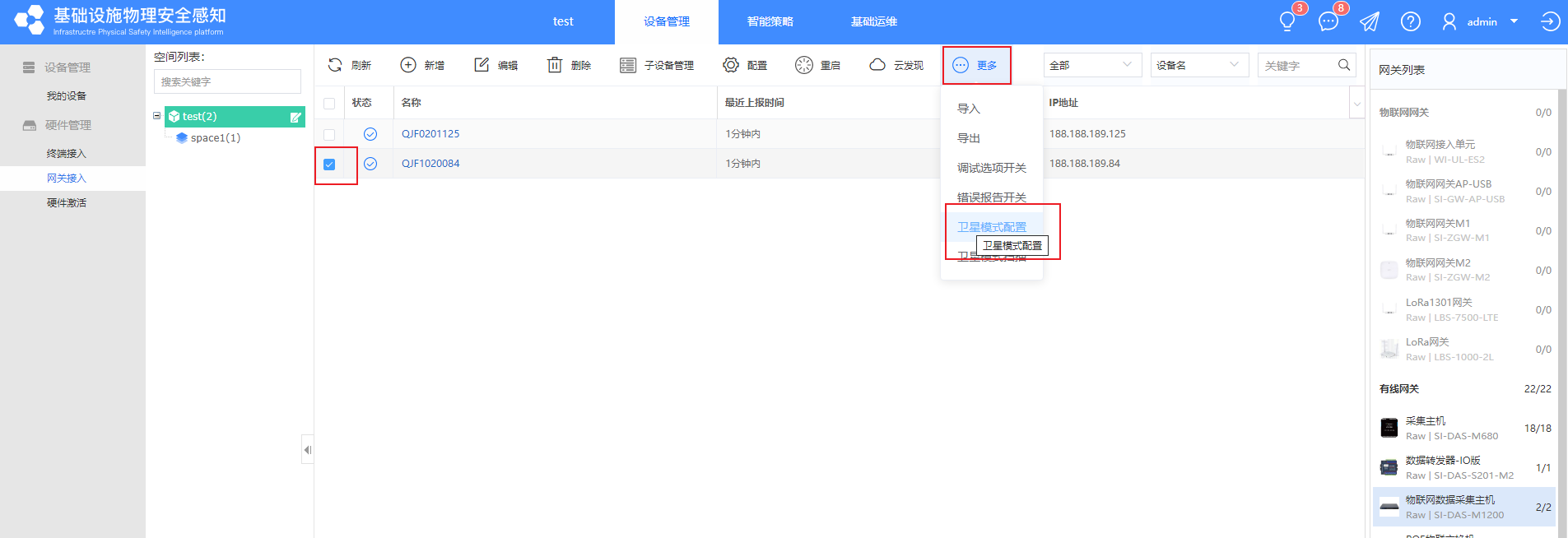 ③【网关接入】-【物联网数据采集主机】(M1200)选择M1200,配置其卫星模式