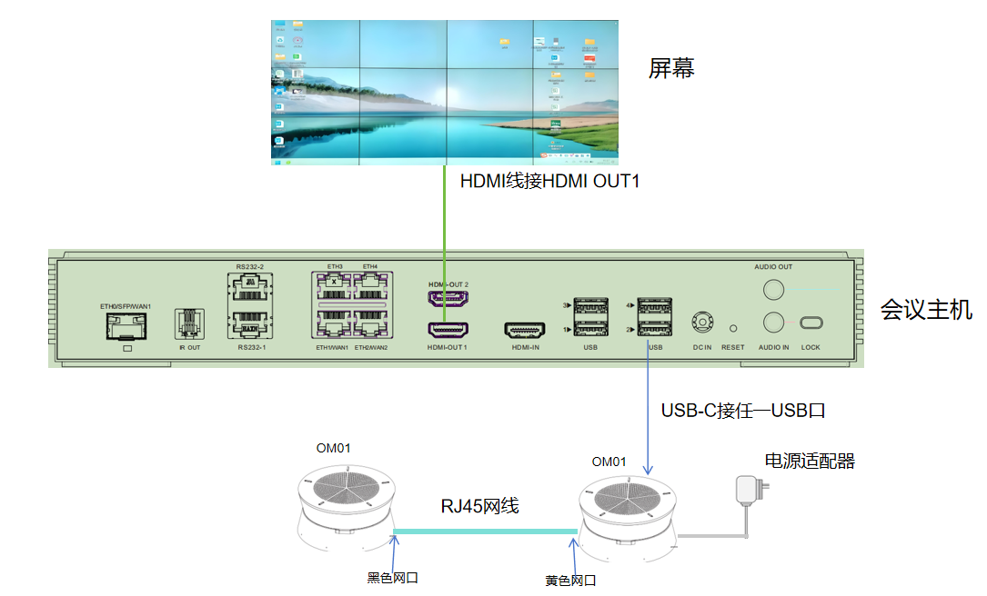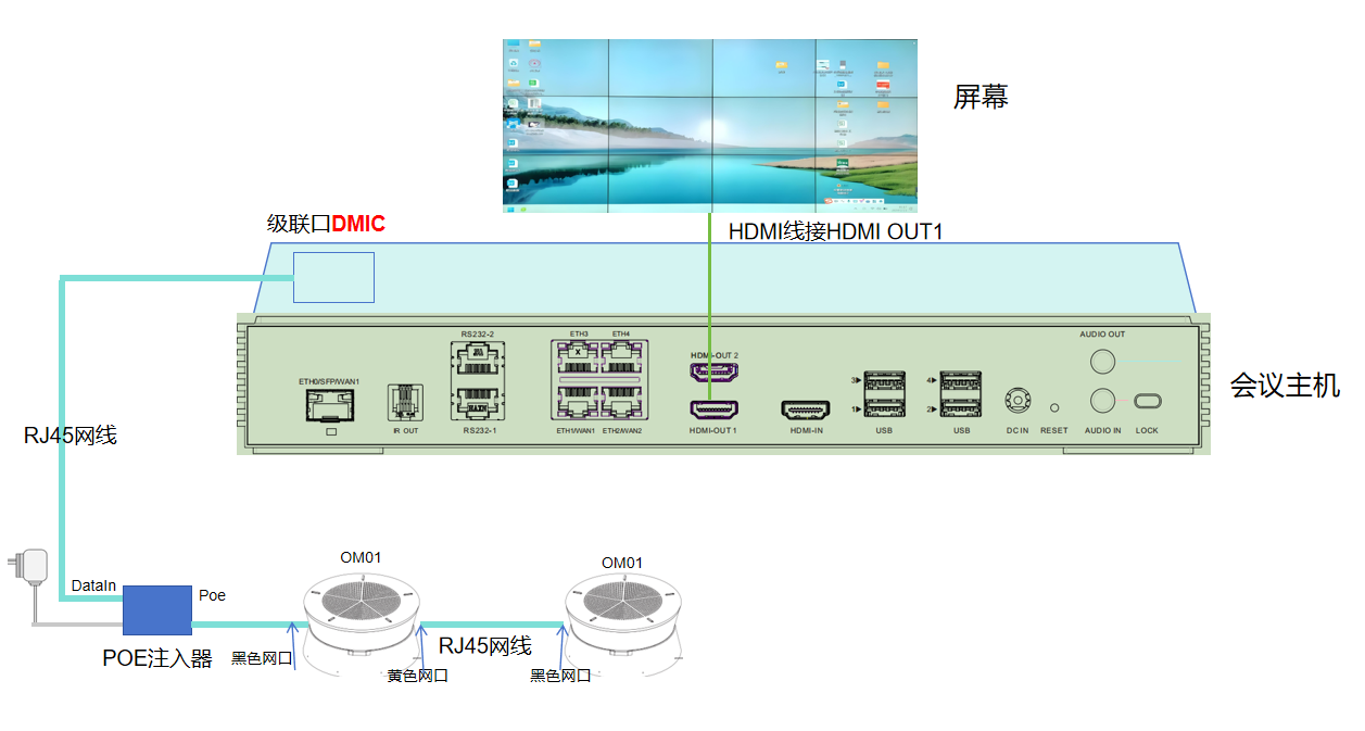 SI-WM20-AV会议主机接线图---级联OM01共2级联